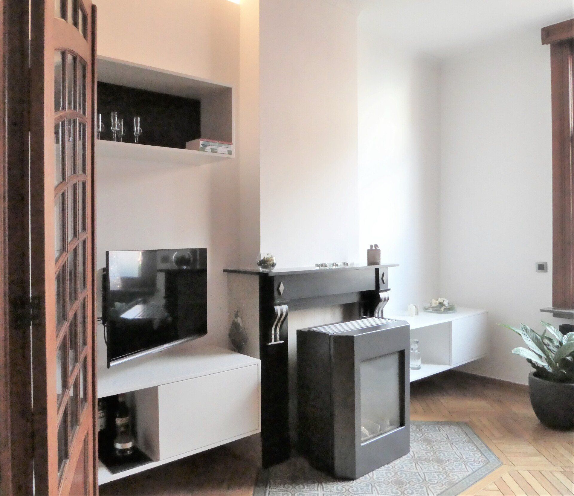 Meubel met uittrekladen in eikfineer op zwarte MDF